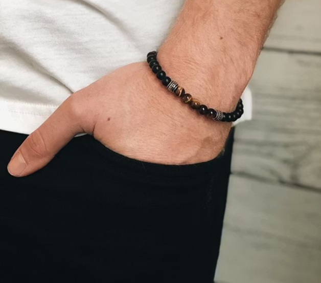 Ett beadsarmband medbruna och svarta kulor. Ett armband med attityd och stil.