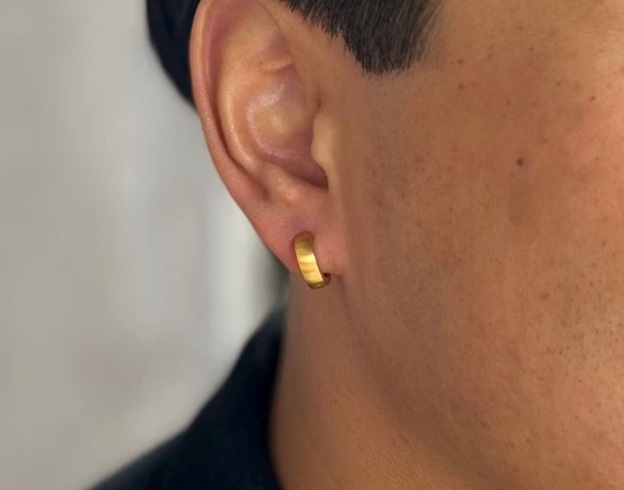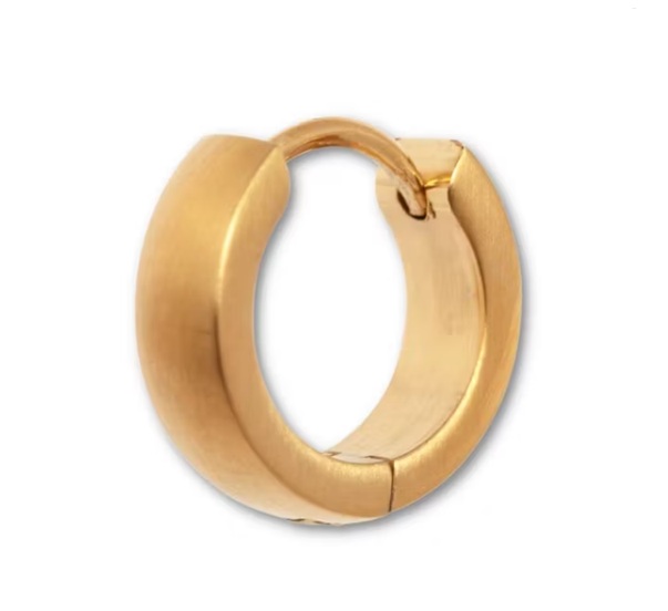 Elvin, den klassiska ringen i något bredare design med borstat stål. Örhänget finns i två olika färger.